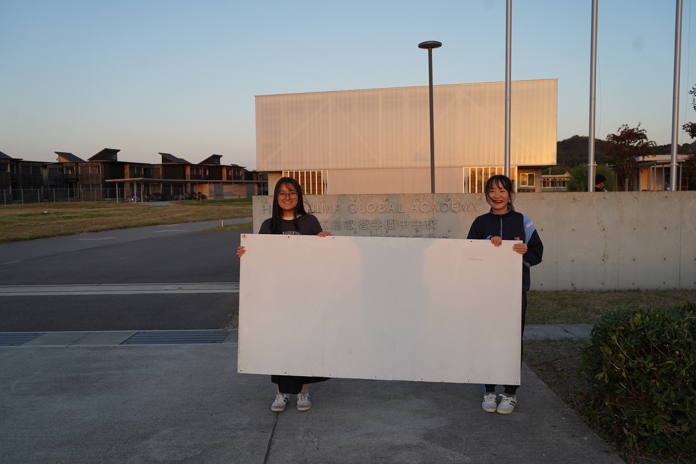 この看板は裏と表がどちらも剥がせる構造なので、裏の白い方を彼女たち(チーム名「看板むすめ」)に託し、あとは完成を待つばかり。わくわく(ドキドキ)